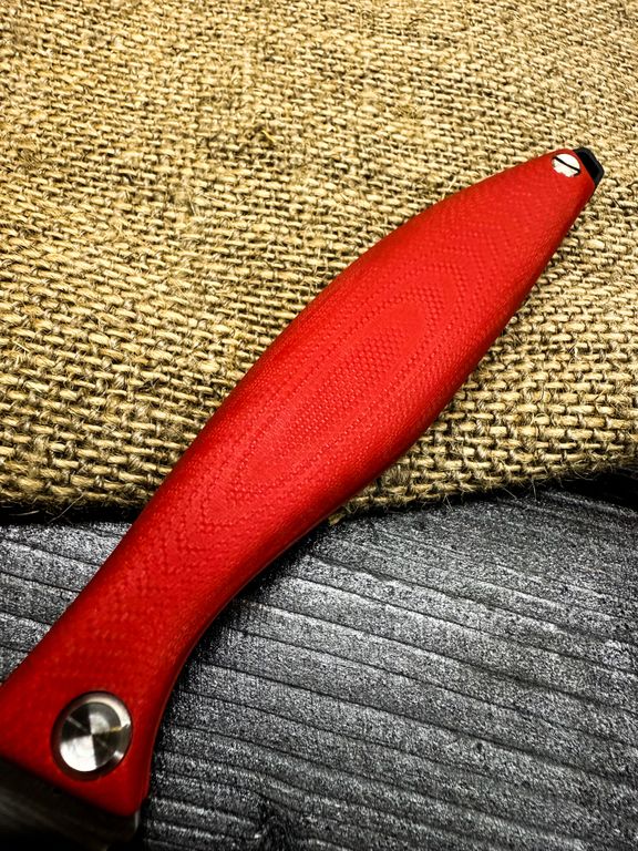 Лёгкий городской складной нож сочетает в себе инновационные решения: надежный замок клик-лок, 3D накладки из цветного G10 или хаотичного карбона, осевой винт собственной разработки, конструкция на латунных шайбах.