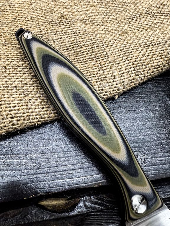 Лёгкий городской складной нож сочетает в себе инновационные решения: надежный замок клик-лок, 3D накладки из цветного G10 или хаотичного карбона, осевой винт собственной разработки, конструкция на латунных шайбах.