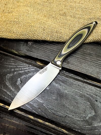 Для клинков мы используем высококачественные стали как доступного, так и премиального сегмента: Bohler K110, AUS-10, VG-10, Elmax, авторский ламинат Леонида Васильева.