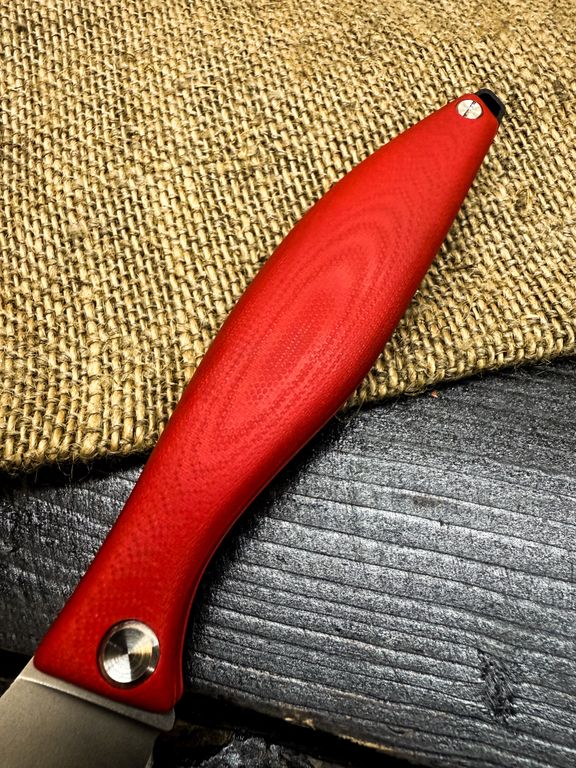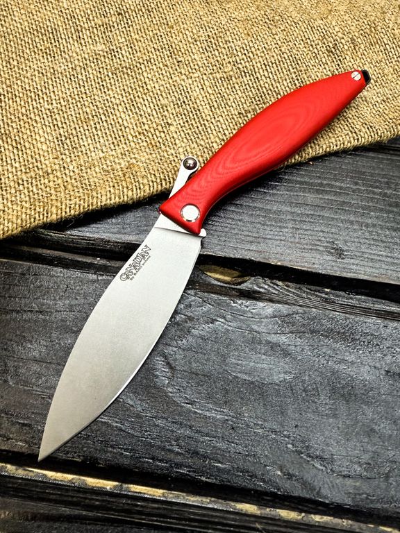 Лёгкий городской складной нож сочетает в себе инновационные решения: надежный замок клик-лок, 3D накладки из цветного G10 или хаотичного карбона, осевой винт собственной разработки, конструкция на латунных шайбах.