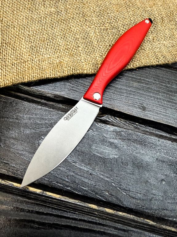 Для клинков мы используем высококачественные стали как доступного, так и премиального сегмента: Bohler K110, AUS-10, VG-10, Elmax, авторский ламинат Леонида Васильева.