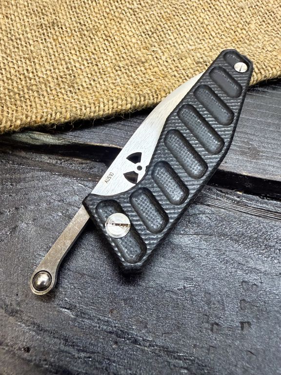 Лёгкий городской складной нож сочетает в себе инновационные решения: надежный замок клик-лок, 3D накладки из цветного G10 или хаотичного карбона, осевой винт собственной разработки, конструкция на латунных шайбах.