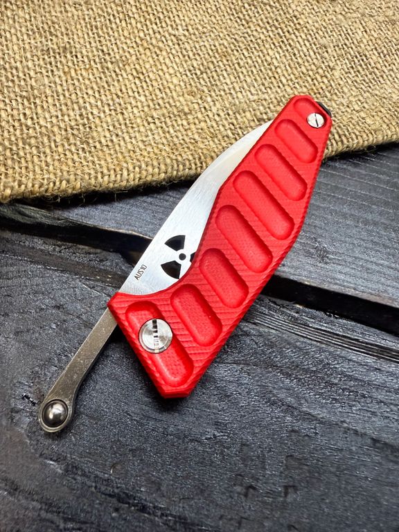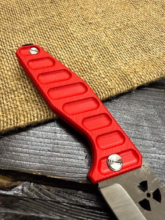 Фрикционный складной нож Атом-1 сталь AUS10, рукоять G10 красный
