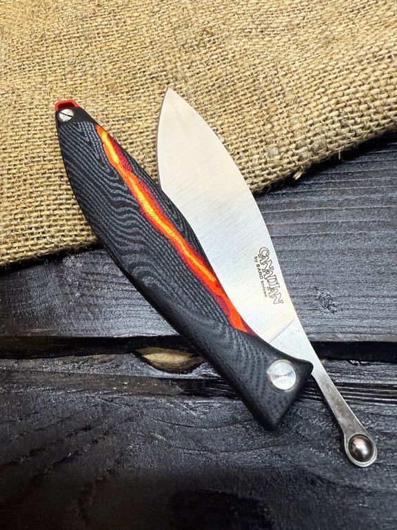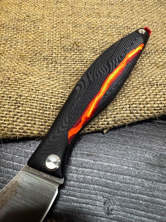Лёгкий городской складной нож сочетает в себе инновационные решения: надежный замок клик-лок, 3D накладки из цветного G10 или хаотичного карбона, осевой винт собственной разработки, конструкция на латунных шайбах.