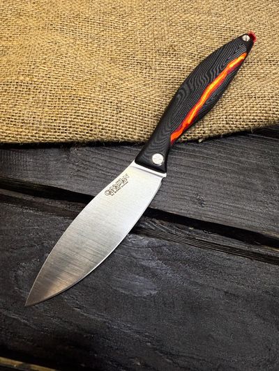 Для клинков мы используем высококачественные стали как доступного, так и премиального сегмента: Bohler K110, AUS-10, VG-10, Elmax, авторский ламинат Леонида Васильева.