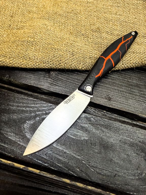 Для клинков мы используем высококачественные стали как доступного, так и премиального сегмента: Bohler K110, AUS-10, VG-10, Elmax, авторский ламинат Леонида Васильева.