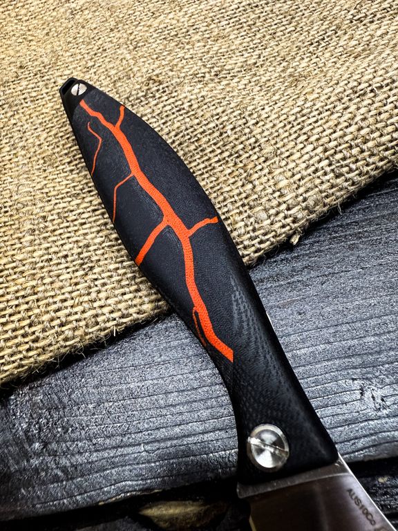 Лёгкий городской складной нож сочетает в себе инновационные решения: надежный замок клик-лок, 3D накладки из цветного G10 или хаотичного карбона, осевой винт собственной разработки, конструкция на латунных шайбах.