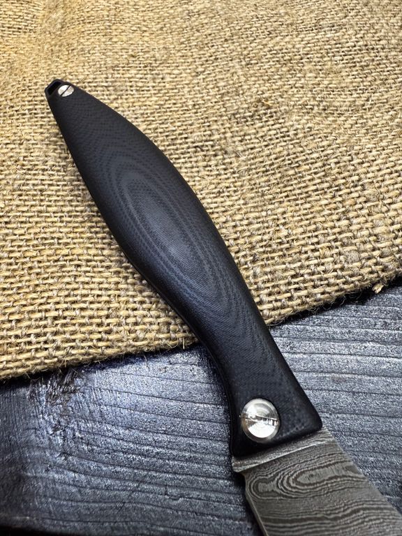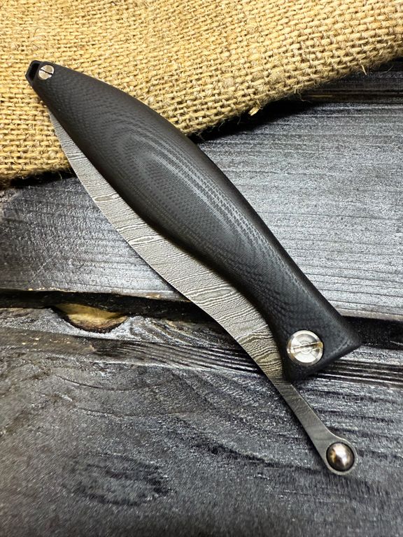 Лёгкий городской складной нож сочетает в себе инновационные решения: надежный замок клик-лок, 3D накладки из цветного G10 или хаотичного карбона, осевой винт собственной разработки, конструкция на латунных шайбах.