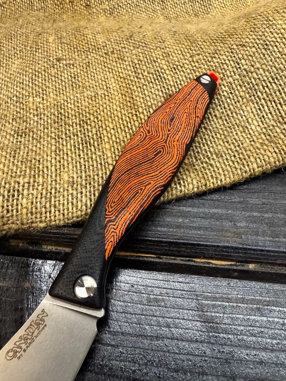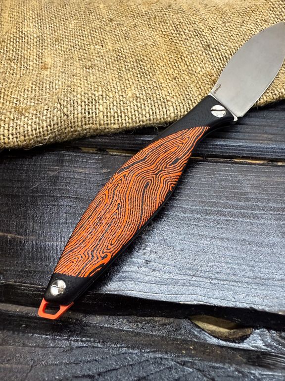Лёгкий городской складной нож сочетает в себе инновационные решения: надежный замок клик-лок, 3D накладки из цветного G10 или хаотичного карбона, осевой винт собственной разработки, конструкция на латунных шайбах.