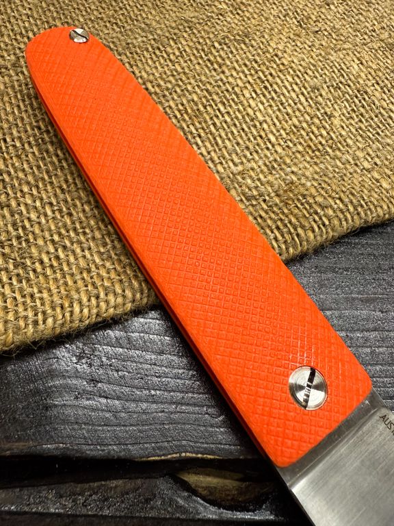 Лёгкий городской складной нож сочетает в себе инновационные решения: надежный замок клик-лок, 3D накладки из цветного G10 или хаотичного карбона, осевой винт собственной разработки, конструкция на латунных шайбах.