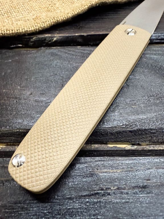 Лёгкий городской складной нож сочетает в себе инновационные решения: надежный замок клик-лок, 3D накладки из цветного G10 или хаотичного карбона, осевой винт собственной разработки, конструкция на латунных шайбах.