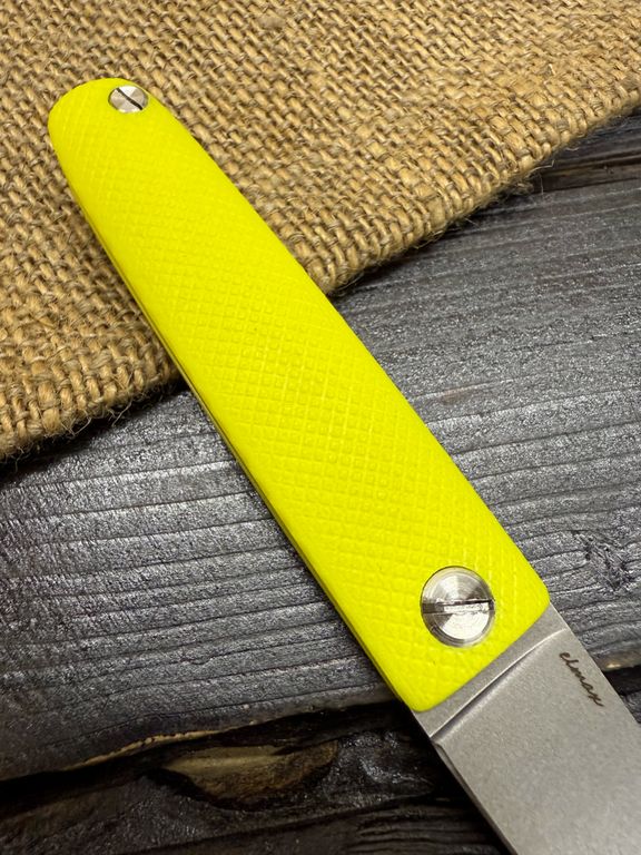 Лёгкий городской складной нож сочетает в себе инновационные решения: надежный замок клик-лок, 3D накладки из цветного G10 или хаотичного карбона, осевой винт собственной разработки, конструкция на латунных шайбах.