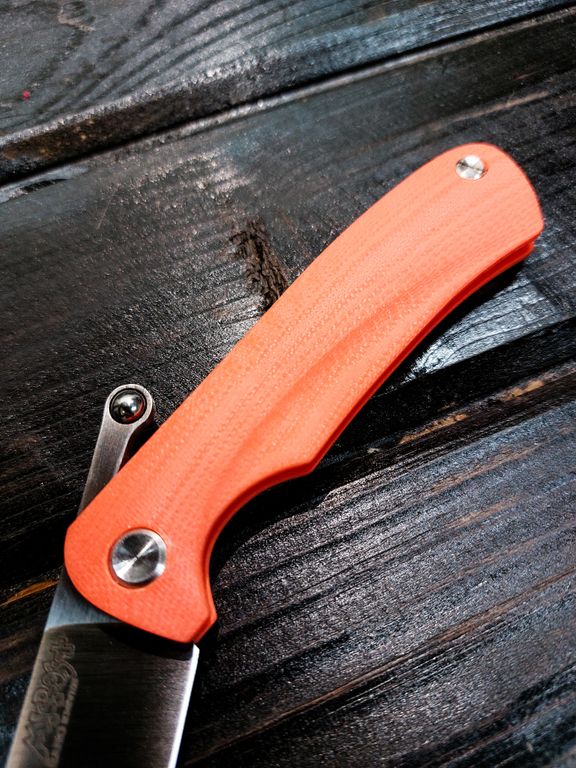 Лёгкий городской складной нож сочетает в себе инновационные решения: надежный замок клик-лок, 3D накладки из цветного G10 или хаотичного карбона, осевой винт собственной разработки, конструкция на латунных шайбах.