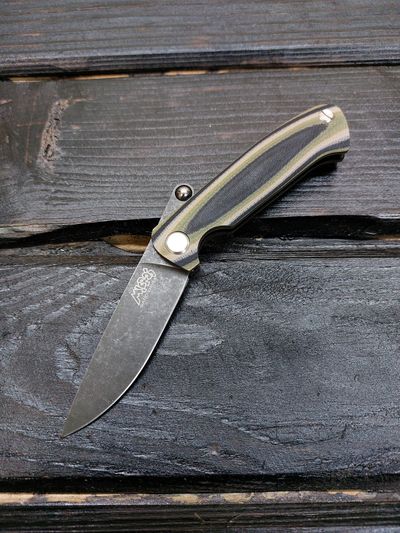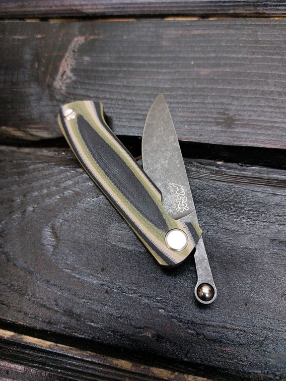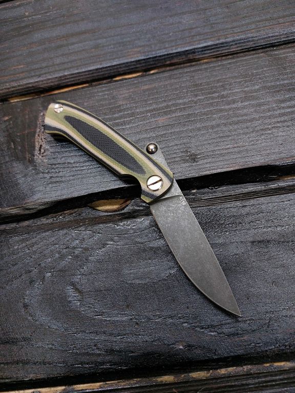 Лёгкий городской складной нож сочетает в себе инновационные решения: надежный замок клик-лок, 3D накладки из цветного G10 или хаотичного карбона, осевой винт собственной разработки, конструкция на латунных шайбах.