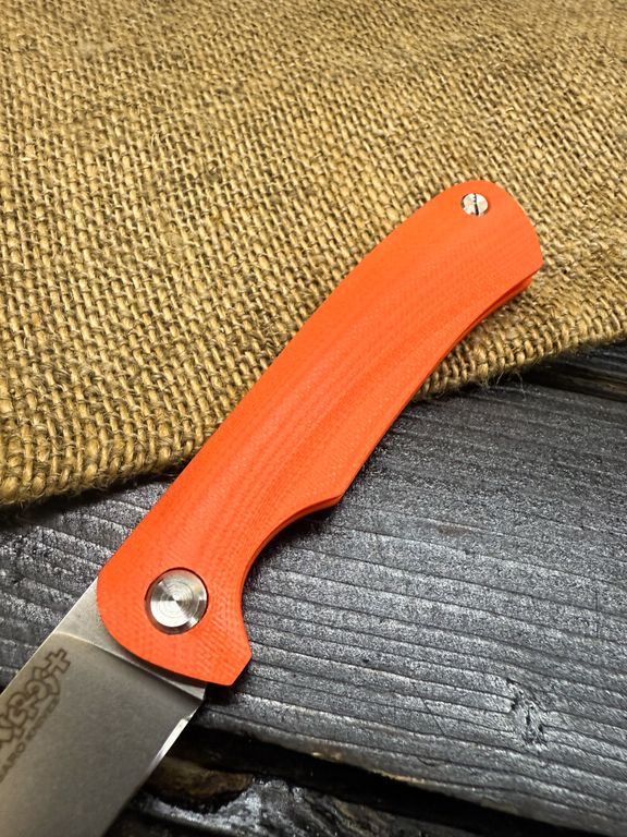 Лёгкий городской складной нож сочетает в себе инновационные решения: надежный замок клик-лок, 3D накладки из цветного G10 или хаотичного карбона, осевой винт собственной разработки, конструкция на латунных шайбах.