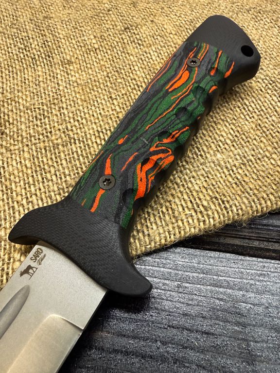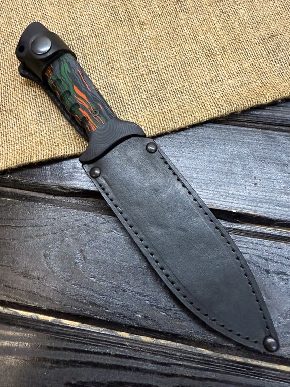 Подарочный нож 6Х9С - гражданская версия ножа, базирующаяся на разработке боевого ножа "Клён" от Российской компании САРО. Травмобезопасная рукоять, улучшенная эргономика, надёжный сквозной монтаж , ножны из натуральной кожи. Нож подойдёт для работы, туризма, рыбалки, охоты, ношения в городе, активного отдыха. Станет отличным подарком для мужчины. Клинок выполнен из нержавеющей стали VG-10, превосходно держит заточку.