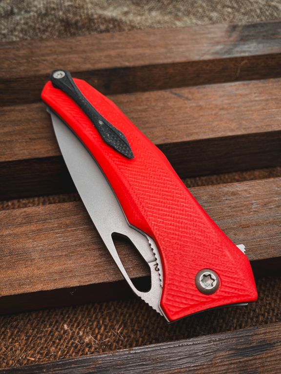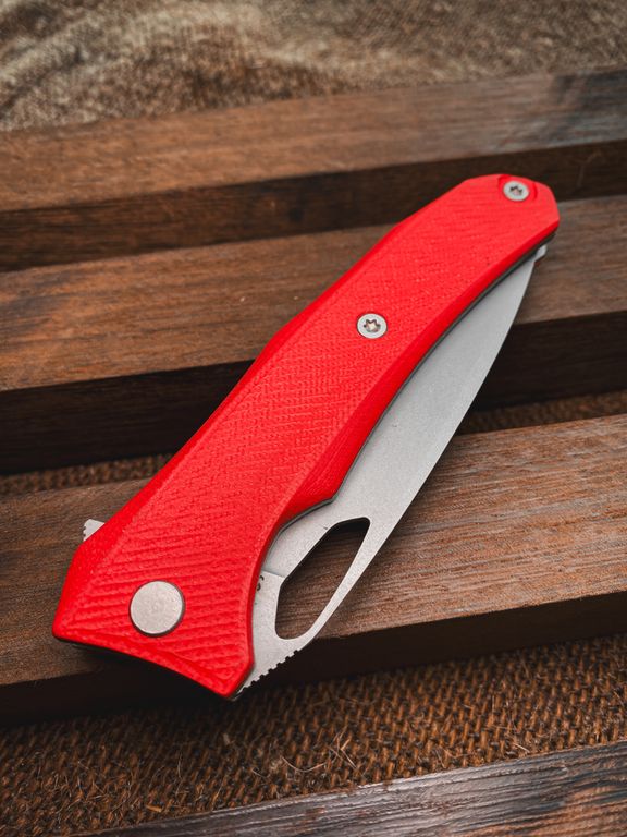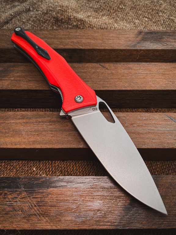 складной Нож Бизон сталь D2, рукоять G10, цвет красный