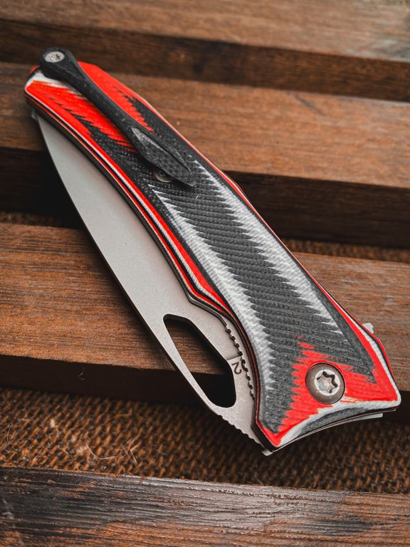 Ножи серии "Бизон" представляют собой идеальное решение для ношения в городе, сочетание характеристик EDC и тактической составляющей. Дизайн Андрея Воропаева дарит ножу гармоничность и законченность форм, универсальность под любую руку. При проектировании этого ножа много времени уделялось удобству рукояти и линиям клинка, проработано удобство открывания ножа: при помощи отверстия в клинке или при помощи флиппера. Проектируя клипсу мы подумали и о левшах. Клипсу из G10 без проблем можно переместить на удобную сторону.