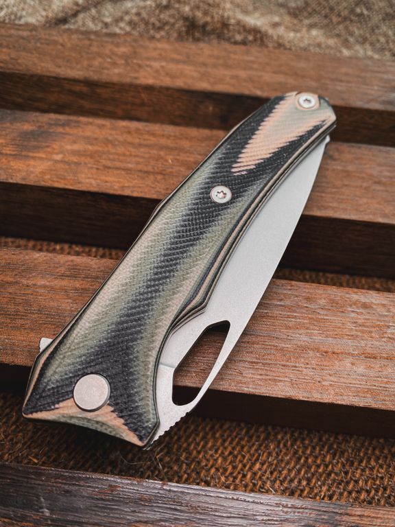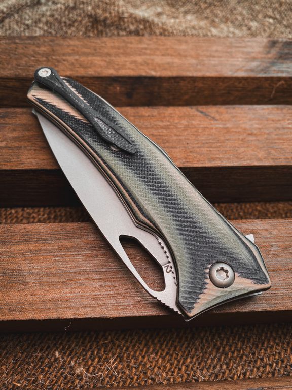 Ножи серии "Бизон" представляют собой идеальное решение для ношения в городе, сочетание характеристик EDC и тактической составляющей. Дизайн Андрея Воропаева дарит ножу гармоничность и законченность форм, универсальность под любую руку. При проектировании этого ножа много времени уделялось удобству рукояти и линиям клинка, проработано удобство открывания ножа: при помощи отверстия в клинке или при помощи флиппера. Проектируя клипсу мы подумали и о левшах. Клипсу из G10 без проблем можно переместить на удобную сторону.