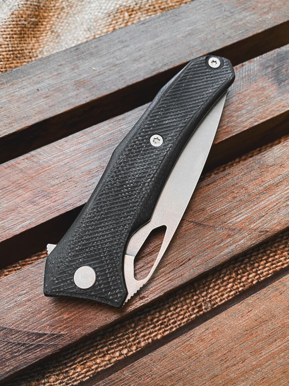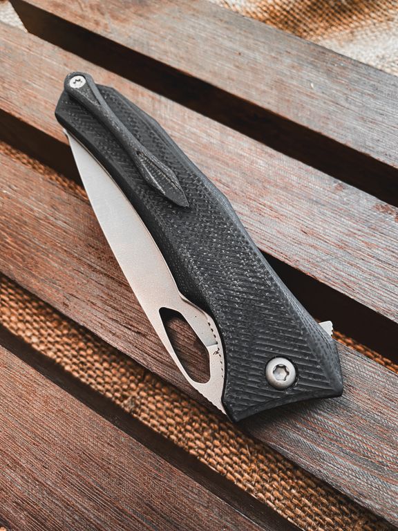Ножи серии "Бизон" представляют собой идеальное решение для ношения в городе, сочетание характеристик EDC и тактической составляющей. Дизайн Андрея Воропаева дарит ножу гармоничность и законченность форм, универсальность под любую руку. При проектировании этого ножа много времени уделялось удобству рукояти и линиям клинка, проработано удобство открывания ножа: при помощи отверстия в клинке или при помощи флиппера. Проектируя клипсу мы подумали и о левшах. Клипсу из G10 без проблем можно переместить на удобную сторону.