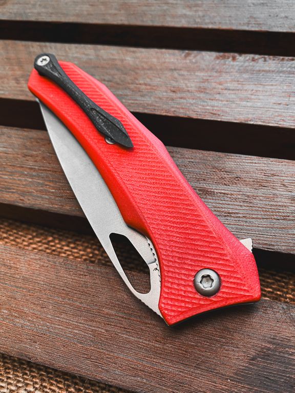 Ножи серии "Бизон" представляют собой идеальное решение для ношения в городе, сочетание характеристик EDC и тактической составляющей. Дизайн Андрея Воропаева дарит ножу гармоничность и законченность форм, универсальность под любую руку. При проектировании этого ножа много времени уделялось удобству рукояти и линиям клинка, проработано удобство открывания ножа: при помощи отверстия в клинке или при помощи флиппера. Проектируя клипсу мы подумали и о левшах. Клипсу из G10 без проблем можно переместить на удобную сторону.