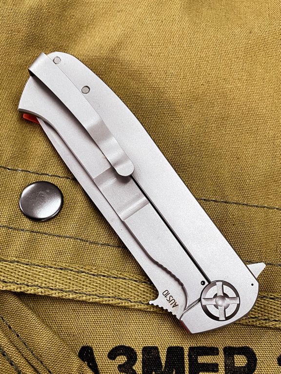 Матовая клипса глубокой посадки делает Чиж NEXT практически незаметным на кармане, а толщина 12 мм. и вес 105-110 гр. позволяет с комфортом носить нож даже в лёгкой одежде.