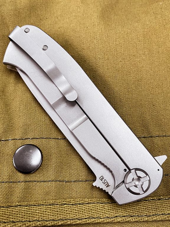 Матовая клипса глубокой посадки делает Чиж NEXT практически незаметным на кармане, а толщина 12 мм. и вес 105-110 гр. позволяет с комфортом носить нож даже в лёгкой одежде.