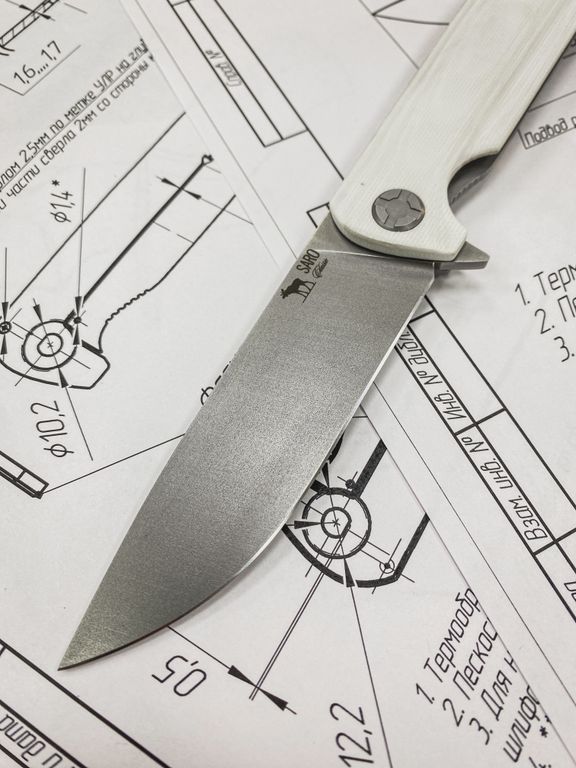 Для обработки клинков и лайнеров мы используем технологии Stonewash и Bead Blast, благодаря чему клинки становятся матовыми и не бликуют, упрочняется наружный слой металла, что обеспечивает дополнительную защиту от питтинга, коррозии и царапин.