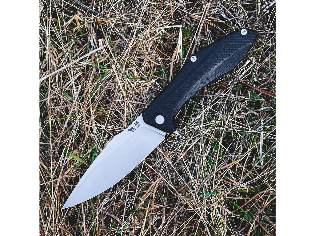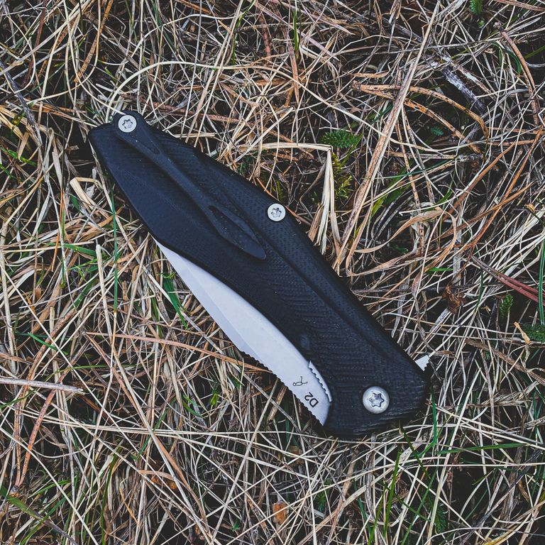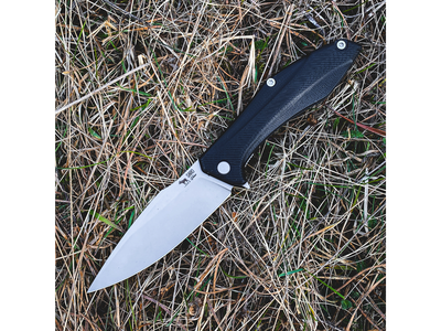 Ножи серии "Грач" воплощают в себе инновационные технические решения, авторский нетривиальный дизайн Тараса Телегина и общую стремительность форм. При проектировании этого ножа учитывался не только внешний вид, но и эргономика. Все металлические части рукояти спрятаны в высокоточные выфрезерованные пазы в накладках, благодаря чему нож приятно ощущается в руках даже при отрицательных температурах. Проектируя клипсу мы подумали и о левшах. Клипсу из G10 без проблем можно переместить на удобную сторону. Для создания клинков мы используем такие материалы как ламинат от Леонида Васильева, D2, AUS-10, а так же применяем криогенную обработку.