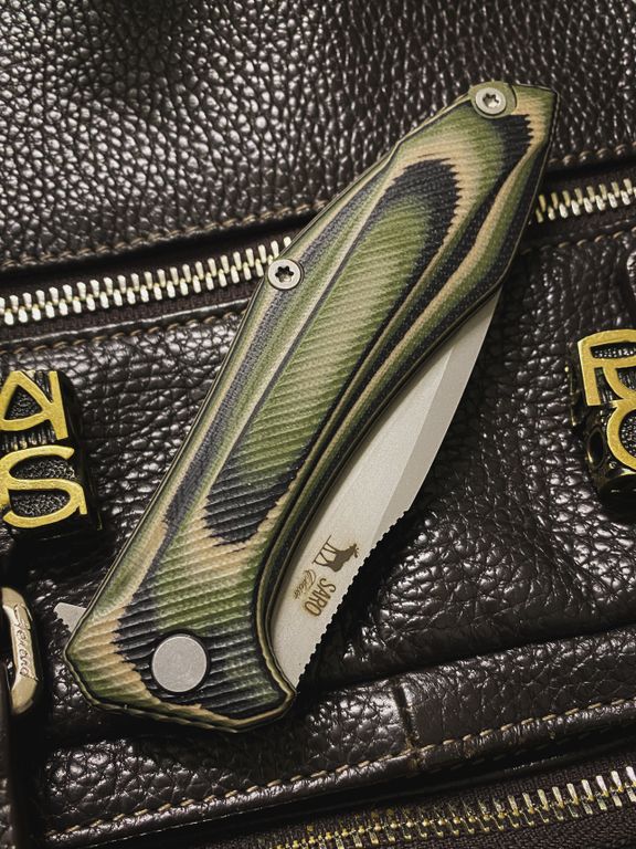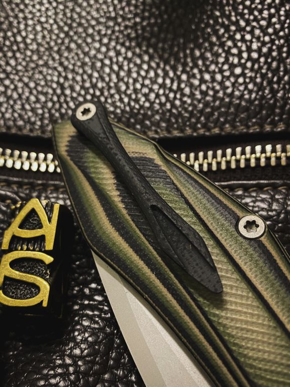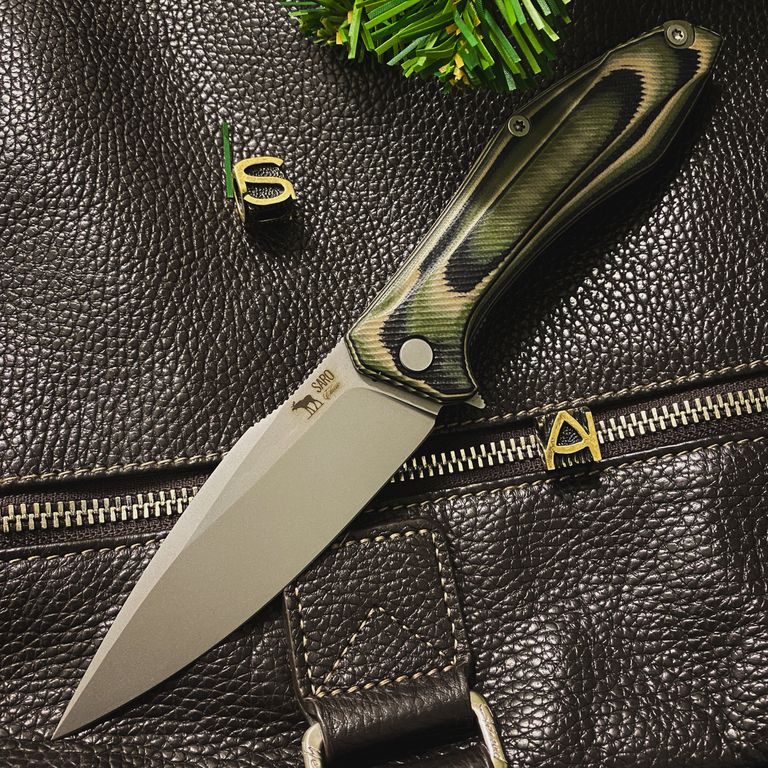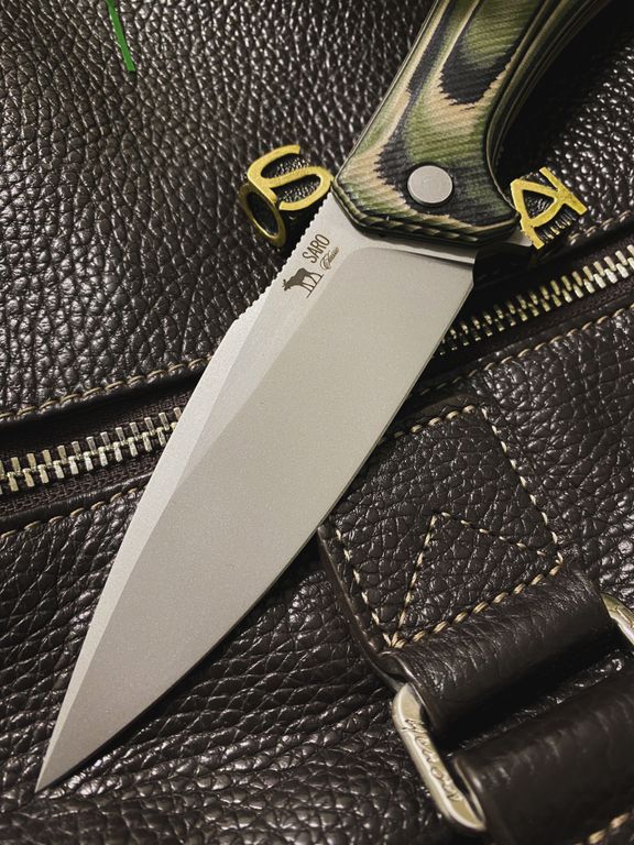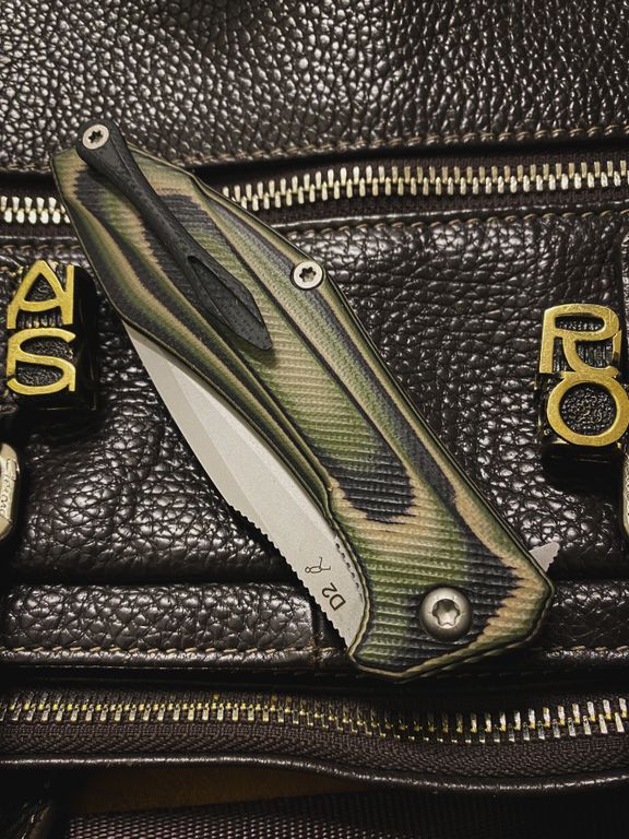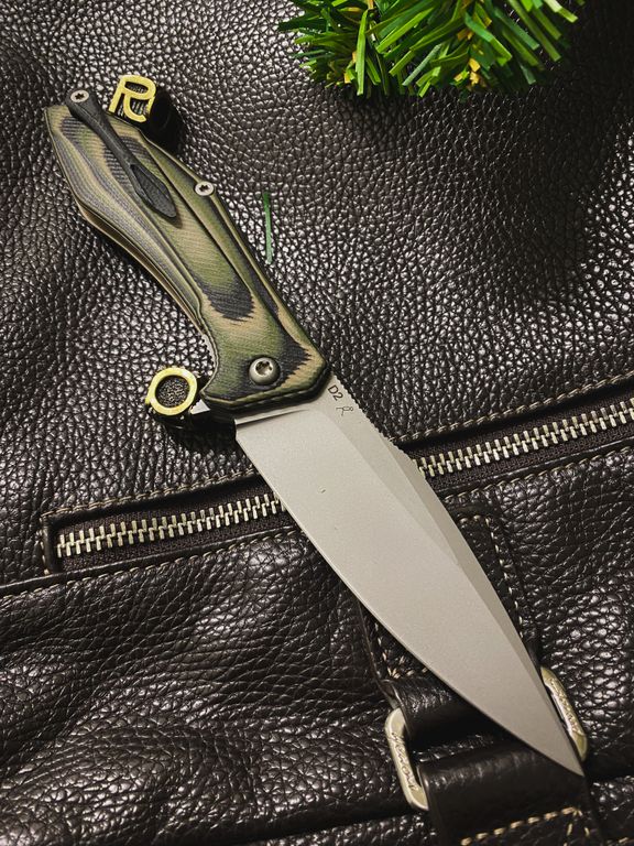Ножи серии "Грач" воплощают в себе инновационные технические решения, авторский нетривиальный дизайн Тараса Телегина и общую стремительность форм. При проектировании этого ножа учитывался не только внешний вид, но и эргономика. Все металлические части рукояти спрятаны в высокоточные выфрезерованные пазы в накладках, благодаря чему нож приятно ощущается в руках даже при отрицательных температурах. Проектируя клипсу мы подумали и о левшах. Клипсу из G10 без проблем можно переместить на удобную сторону. Для создания клинков мы используем такие материалы как ламинат от Леонида Васильева, D2, AUS-10, а так же применяем криогенную обработку.