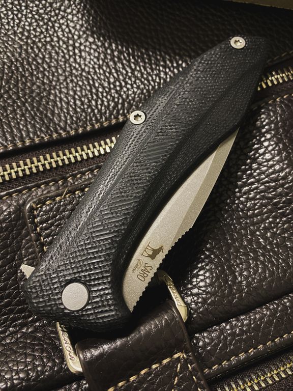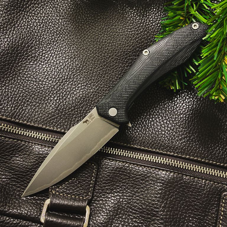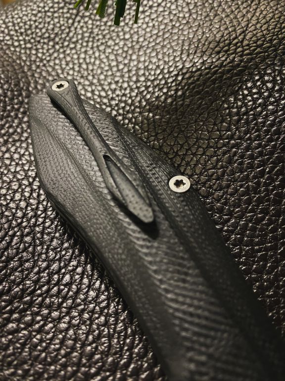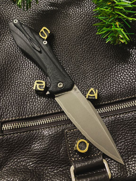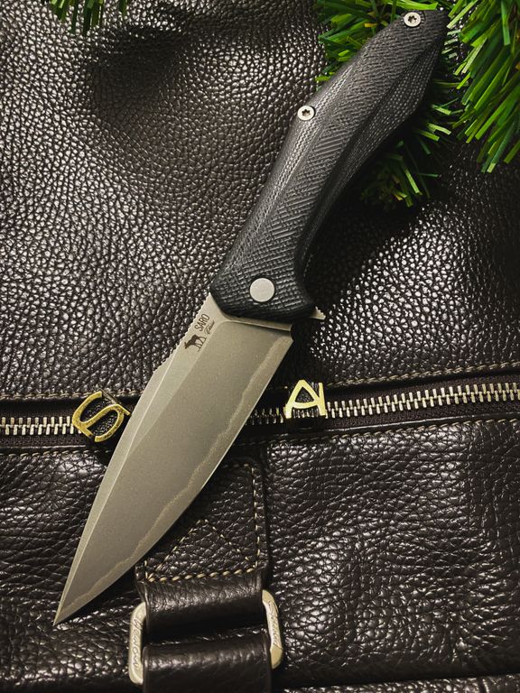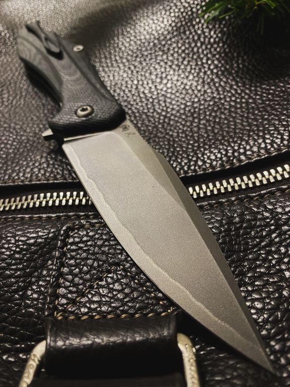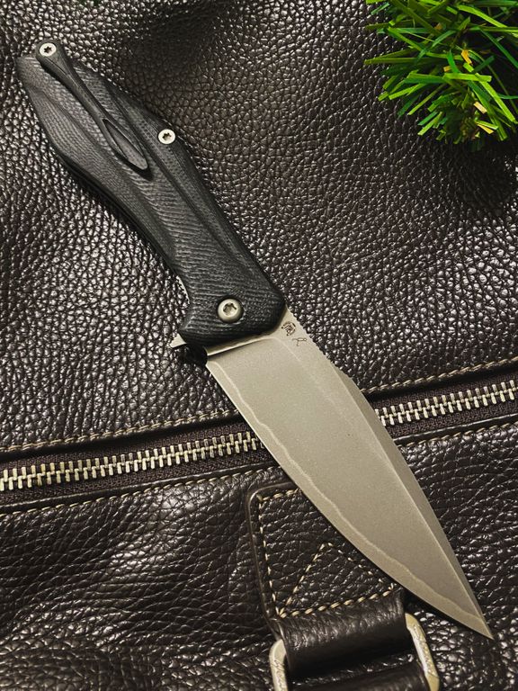 Ножи серии "Грач" воплощают в себе инновационные технические решения, авторский нетривиальный дизайн Тараса Телегина и общую стремительность форм. При проектировании этого ножа учитывался не только внешний вид, но и эргономика. Все металлические части рукояти спрятаны в высокоточные выфрезерованные пазы в накладках, благодаря чему нож приятно ощущается в руках даже при отрицательных температурах. Проектируя клипсу мы подумали и о левшах. Клипсу из G10 без проблем можно переместить на удобную сторону. Для создания клинков мы используем такие материалы как ламинат от Леонида Васильева, D2, AUS-10, а так же применяем криогенную обработку.