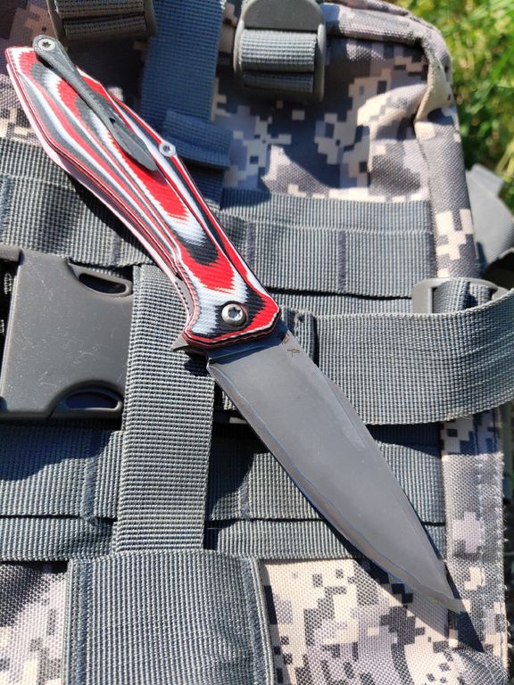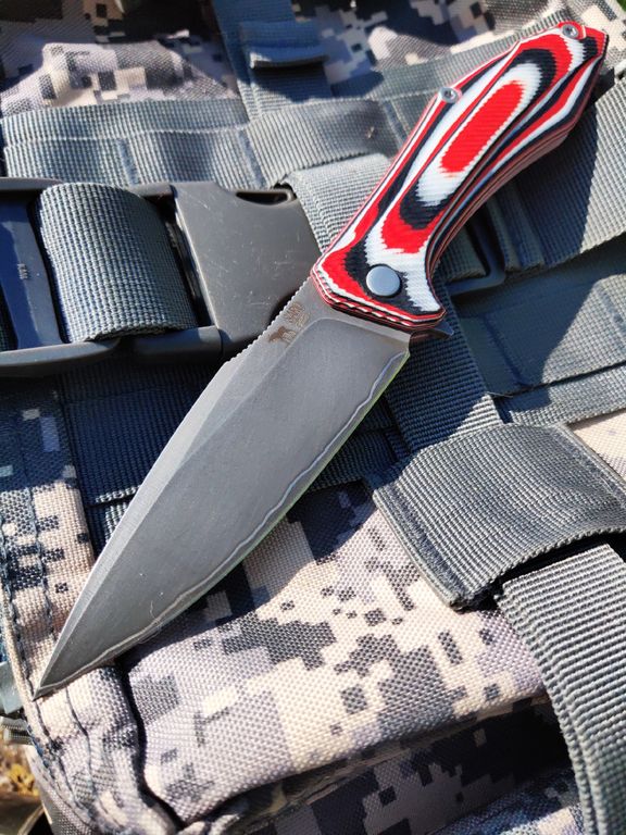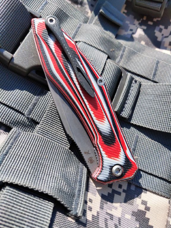 Ножи серии "Грач" воплощают в себе инновационные технические решения, авторский нетривиальный дизайн Тараса Телегина и общую стремительность форм. При проектировании этого ножа учитывался не только внешний вид, но и эргономика. Все металлические части рукояти спрятаны в высокоточные выфрезерованные пазы в накладках, благодаря чему нож приятно ощущается в руках даже при отрицательных температурах. Проектируя клипсу мы подумали и о левшах. Клипсу из G10 без проблем можно переместить на удобную сторону. Для создания клинков мы используем такие материалы как ламинат от Леонида Васильева, D2, AUS-10, а так же применяем криогенную обработку.