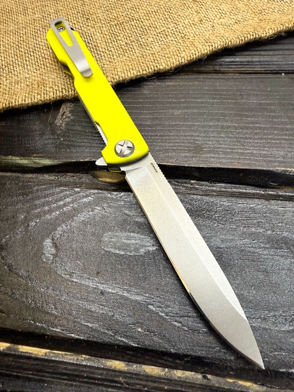 В серии EVO обновили внешний вид клинка, плавник стал больше для более лёгкого открывания, сместили осевой увеличив рычаг для яркого флипа. Клинок на 97мм, обух 2,7мм, клипса по прежнему на обе стороны.
