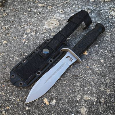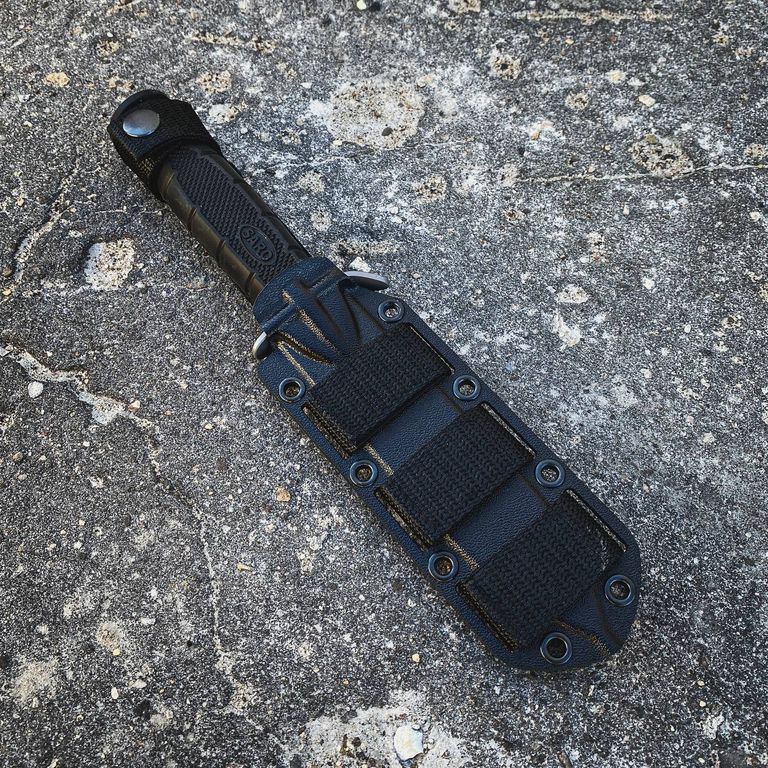 Симметричная листовидная форма клинка позволяет передать большее усилие на пробитие, а так же даёт более длинную режущую кромку за счёт рекурвы. Травмобезопасная рукоять, улучшенная эргономика, надёжный сквозной монтаж переходящий в стеклобой, ножны из ABS с двойной фиксацией, с подвесом MOLLE. Острие позволит без проблем вскрывать консервные банки, пробивать волокнистые и тканые материалы, резину, кожу, дерево и др.
